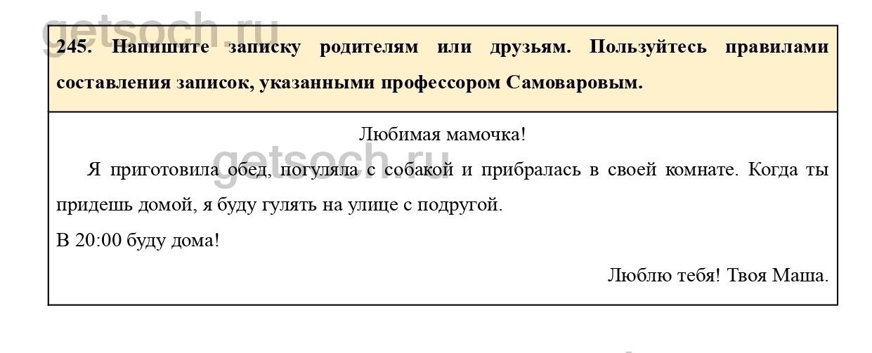 Напишите записку родителям или друзьям. Пользуйтесь правилами составления записок, указанными профессором Самоваровым.