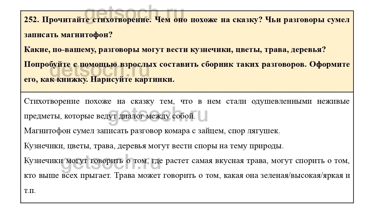 Рассмотрим ответы на Упражнение 252 из учебника по русскому языку для 2 класса Климановой