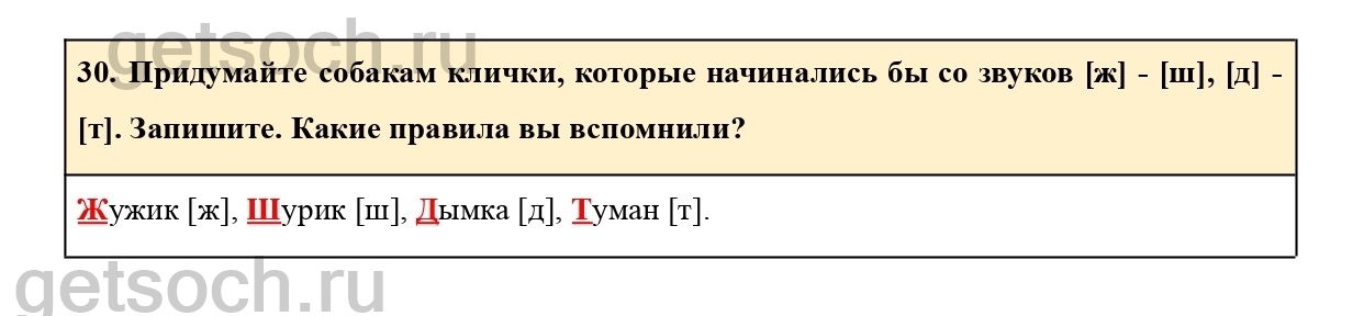 30. Придумайте собакам клички, которые начинались бы со звуков [ж] – [ш], [д] –
