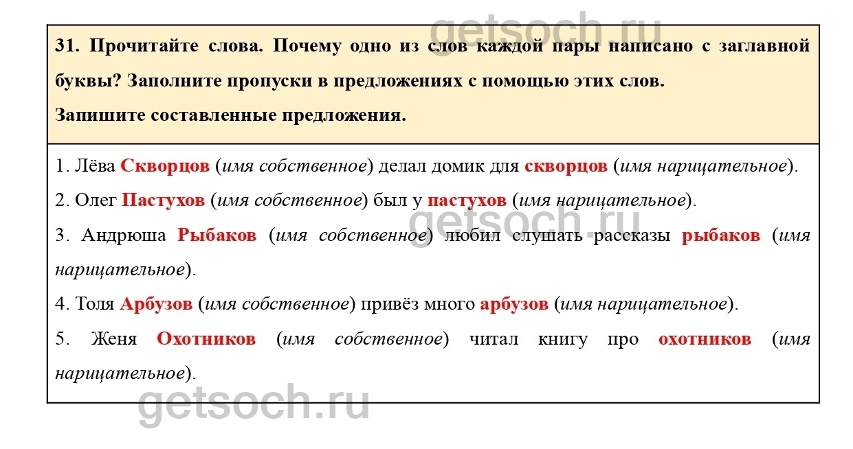 Рассмотрим ответы на Упражнение 31 из учебника по русскому языку для 2 класса Климановой