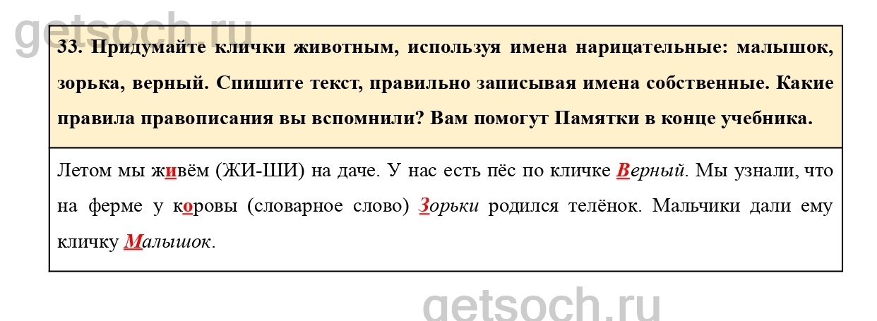 Рассмотрим ответы на Упражнение 33 из учебника по русскому языку для 2 класса Климановой