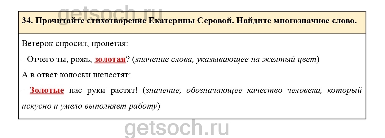 34. Прочитайте стихотворение Екатерины Серовой. Найдите многозначное слово.