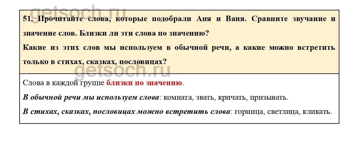 Рассмотрим ответы на Упражнение 51 из учебника по русскому языку для 2 класса Климановой