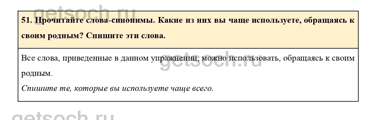 51. Прочитайте слова-синонимы. Какие из них вы чаще используете, обращаясь к