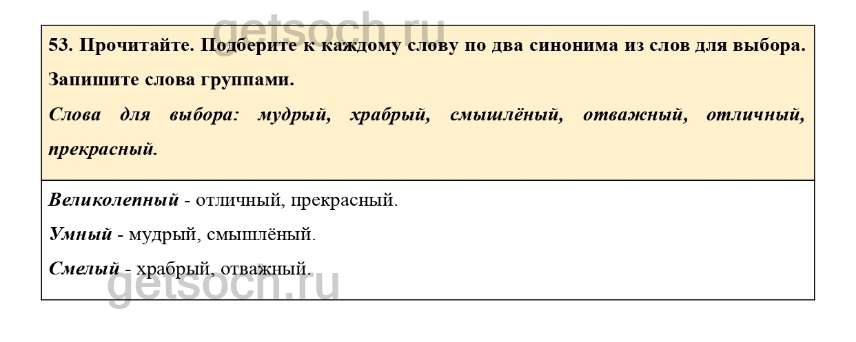 53. Прочитайте. Подберите к каждому слову по два синонима из слов для выбора.