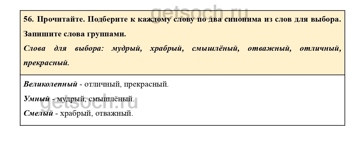 Рассмотрим ответы на Упражнение 56 из учебника по русскому языку для 2 класса Климановой