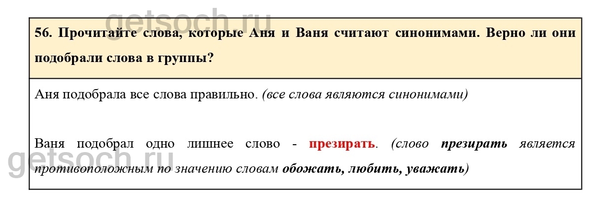 56. Прочитайте слова, которые Аня и Ваня считают синонимами. Верно ли они