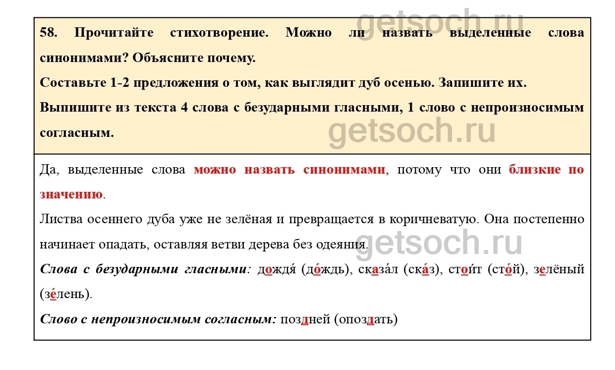 Рассмотрим ответы на Упражнение 58 из учебника по русскому языку для 2 класса Климановой