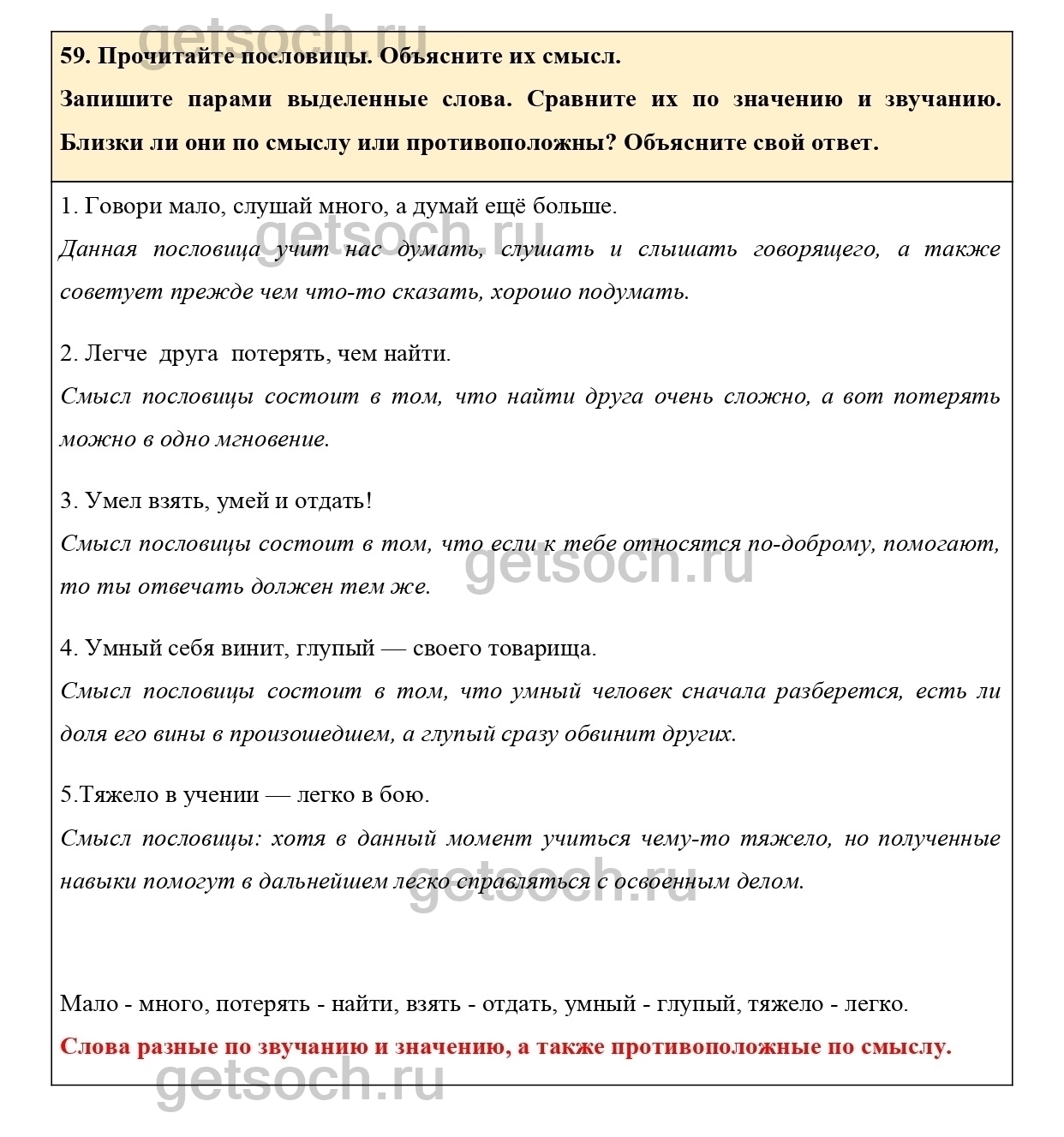 Рассмотрим ответы на Упражнение 59 из учебника по русскому языку для 2 класса Климановой