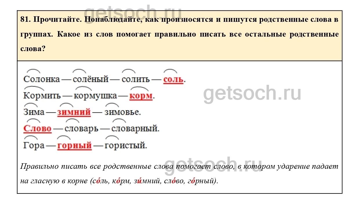 81. Прочитайте. Понаблюдайте, как произносятся и пишутся родственные слова в