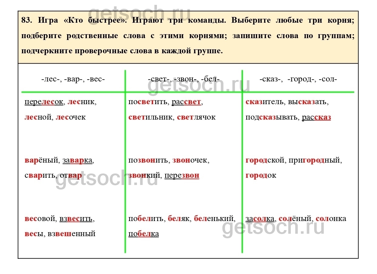 83. Игра «Кто быстрее». Играют три команды. Выберите любые три корня;