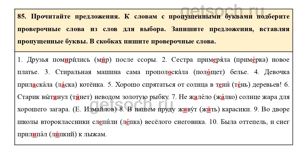 Рассмотрим ответы на Упражнение 85 из учебника по русскому языку для 2 класса Климановой