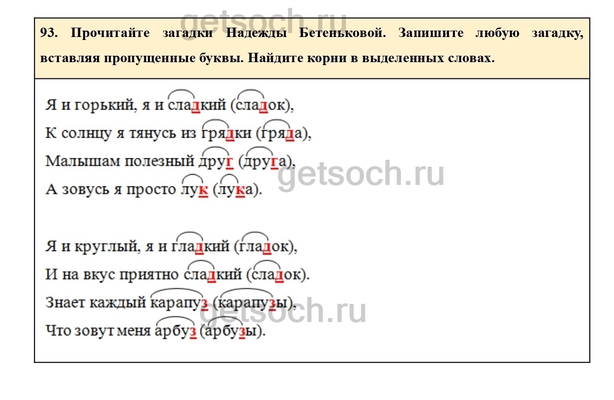 Рассмотрим ответы на Упражнение 93 из учебника по русскому языку для 2 класса Климановой