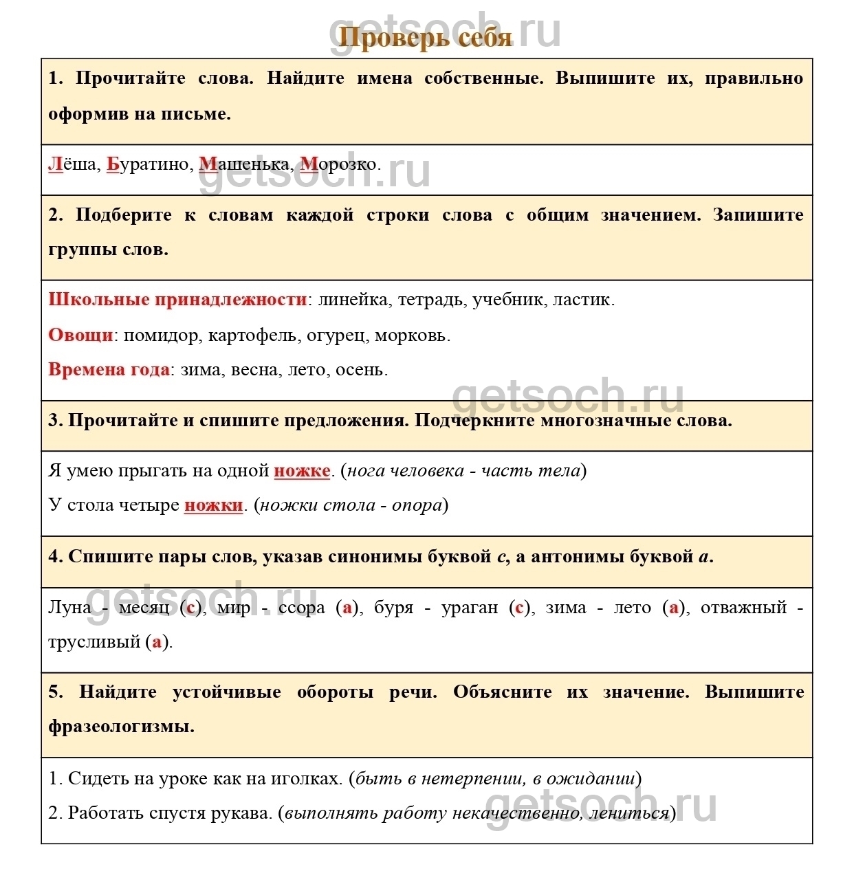 Рассмотрим ответы на Проверь Себя страница 42 из учебника по русскому языку для 2 класса Климановой