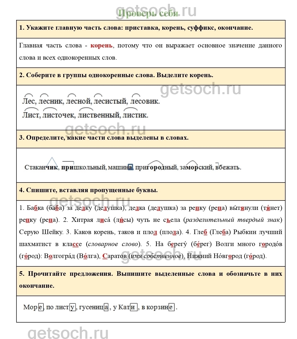 Рассмотрим ответы на Проверь Себя страница 70 из учебника по русскому языку для 2 класса Климановой