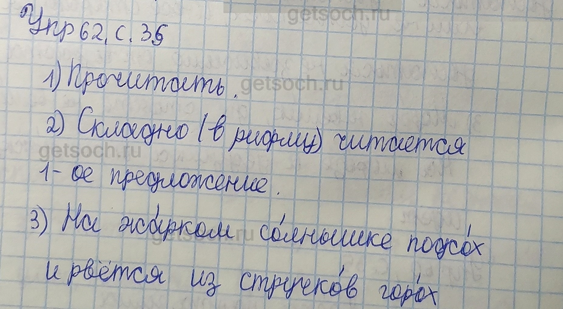 Рассмотрим ответы на Упражнение 62 из учебника по русскому языку для 2 класса Поляковой