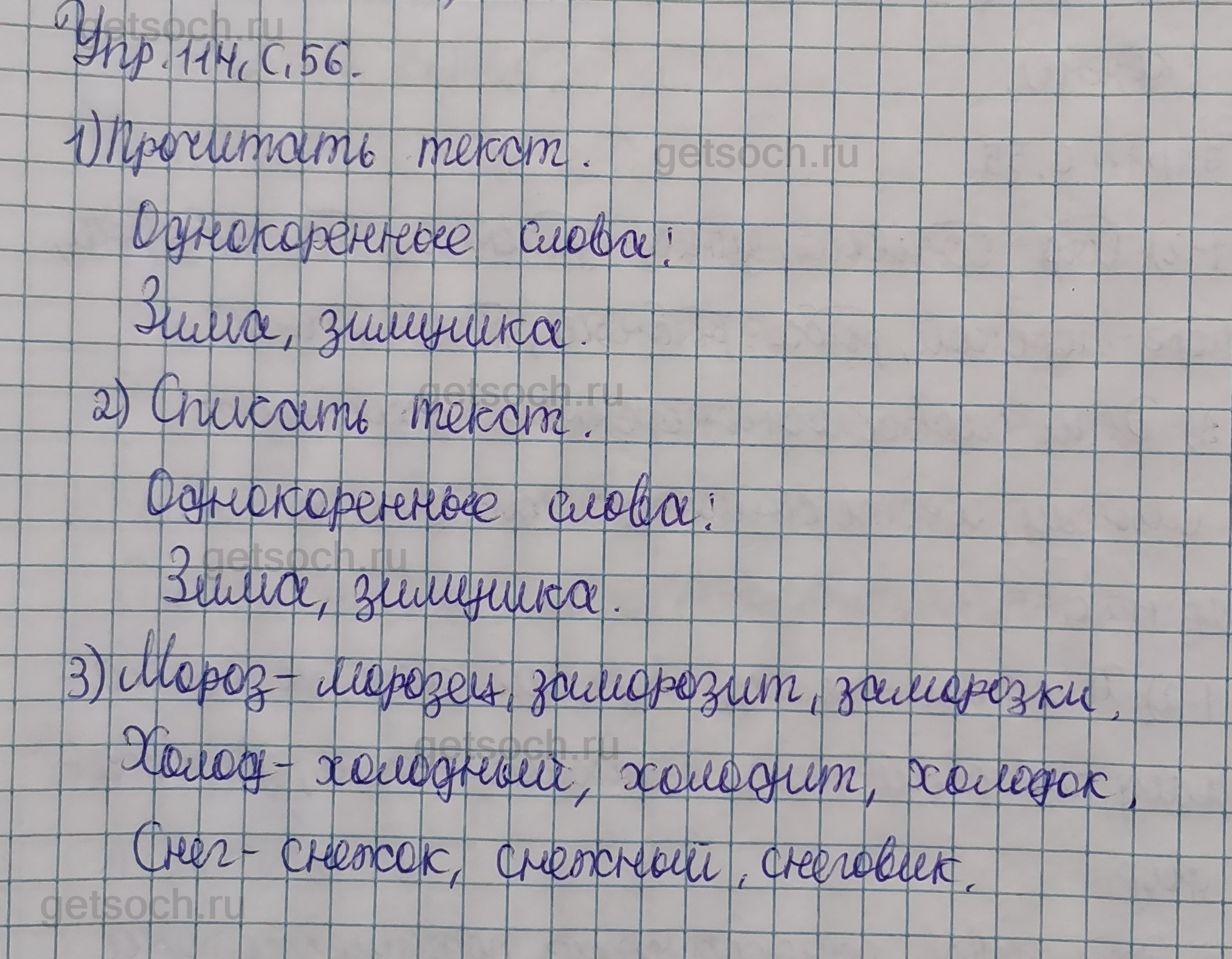 3. Мороз, холод, снег. Подбери однокоренные слова. Напиши.