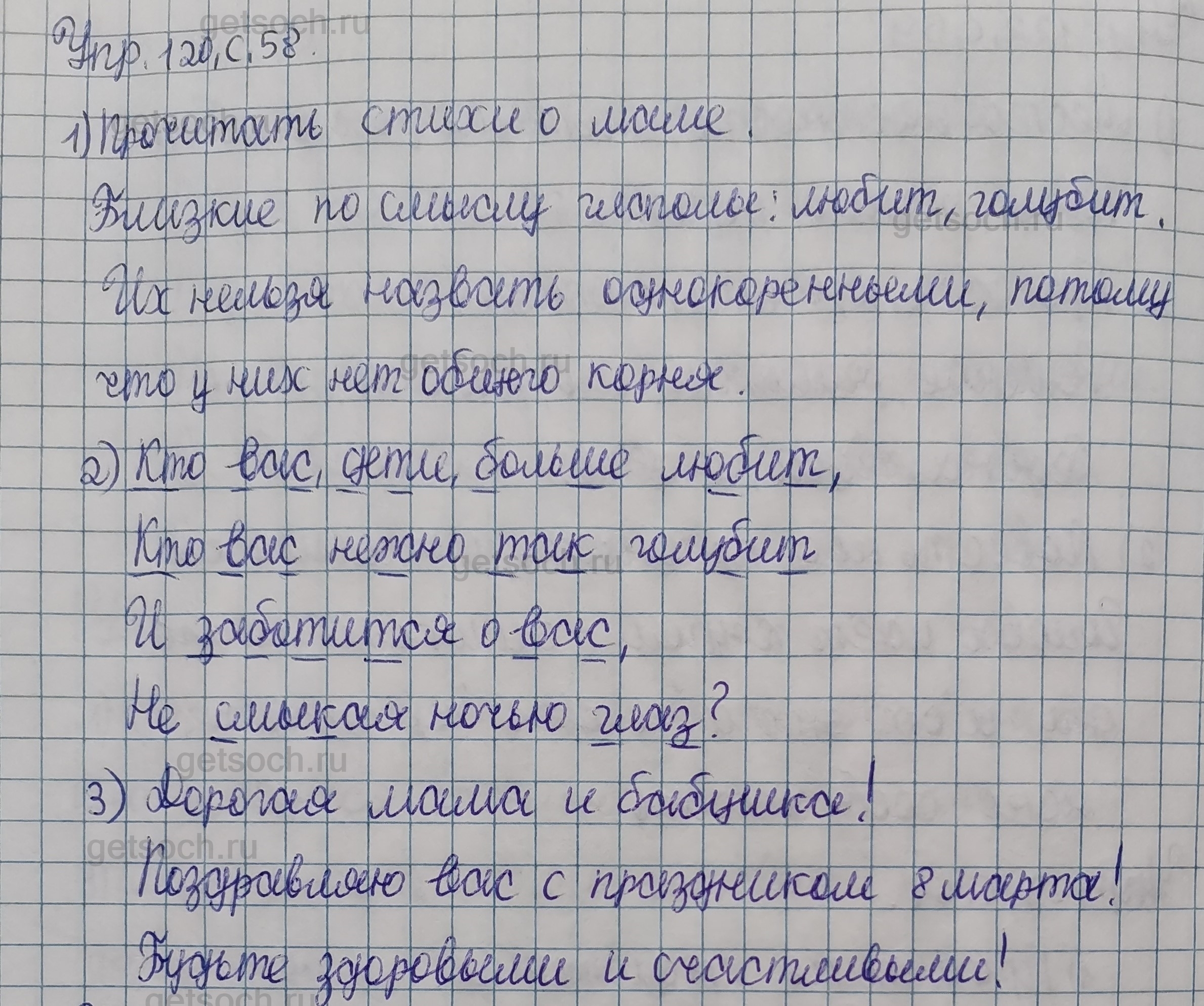 1. Прочитай стихи о маме. Какие глаголы близки по смыслу, но их нельзя назвать однокоренными? Почему?