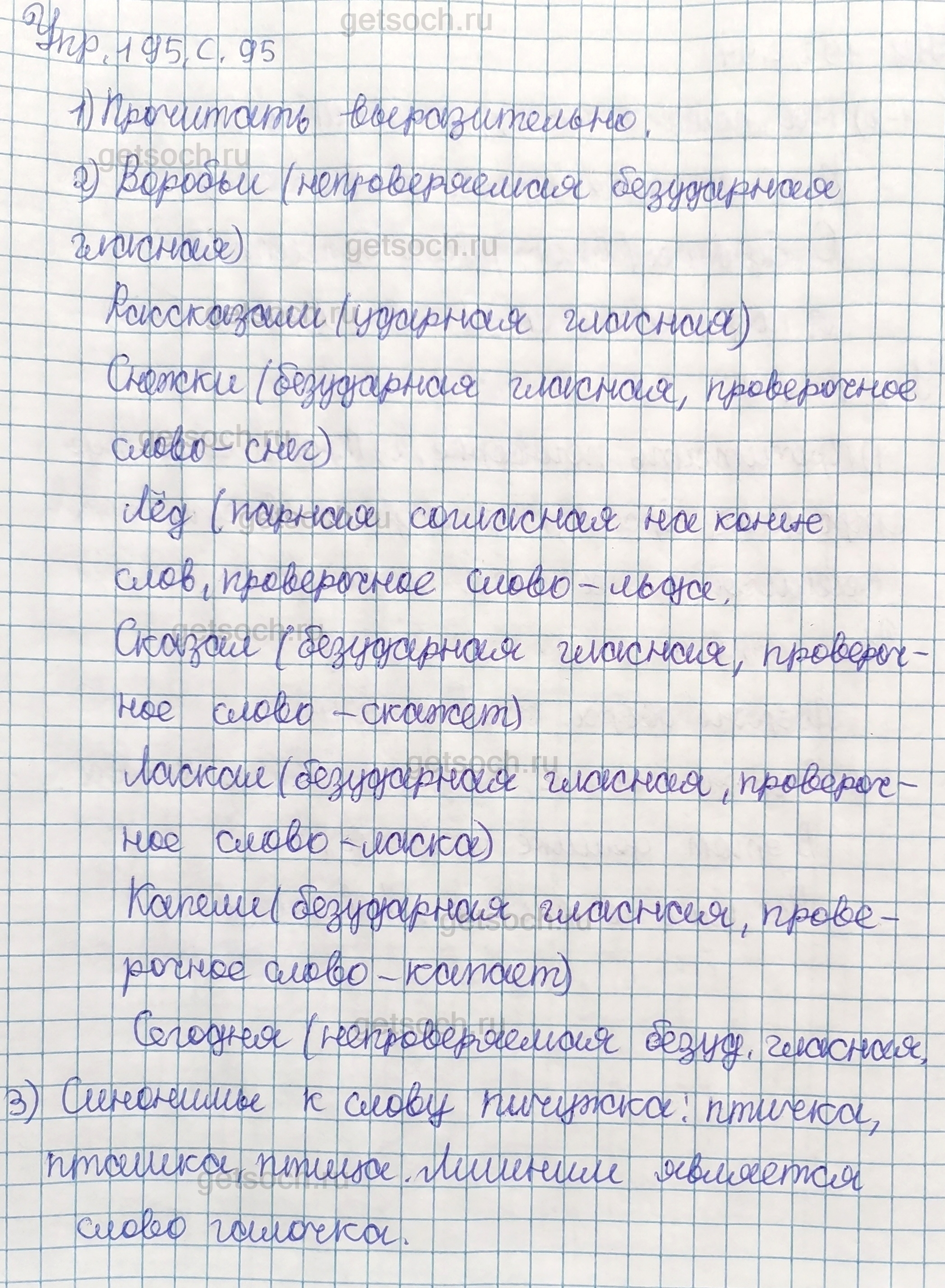 Рассмотрим ответы на Упражнение 195 из учебника по русскому языку для 2 класса Поляковой