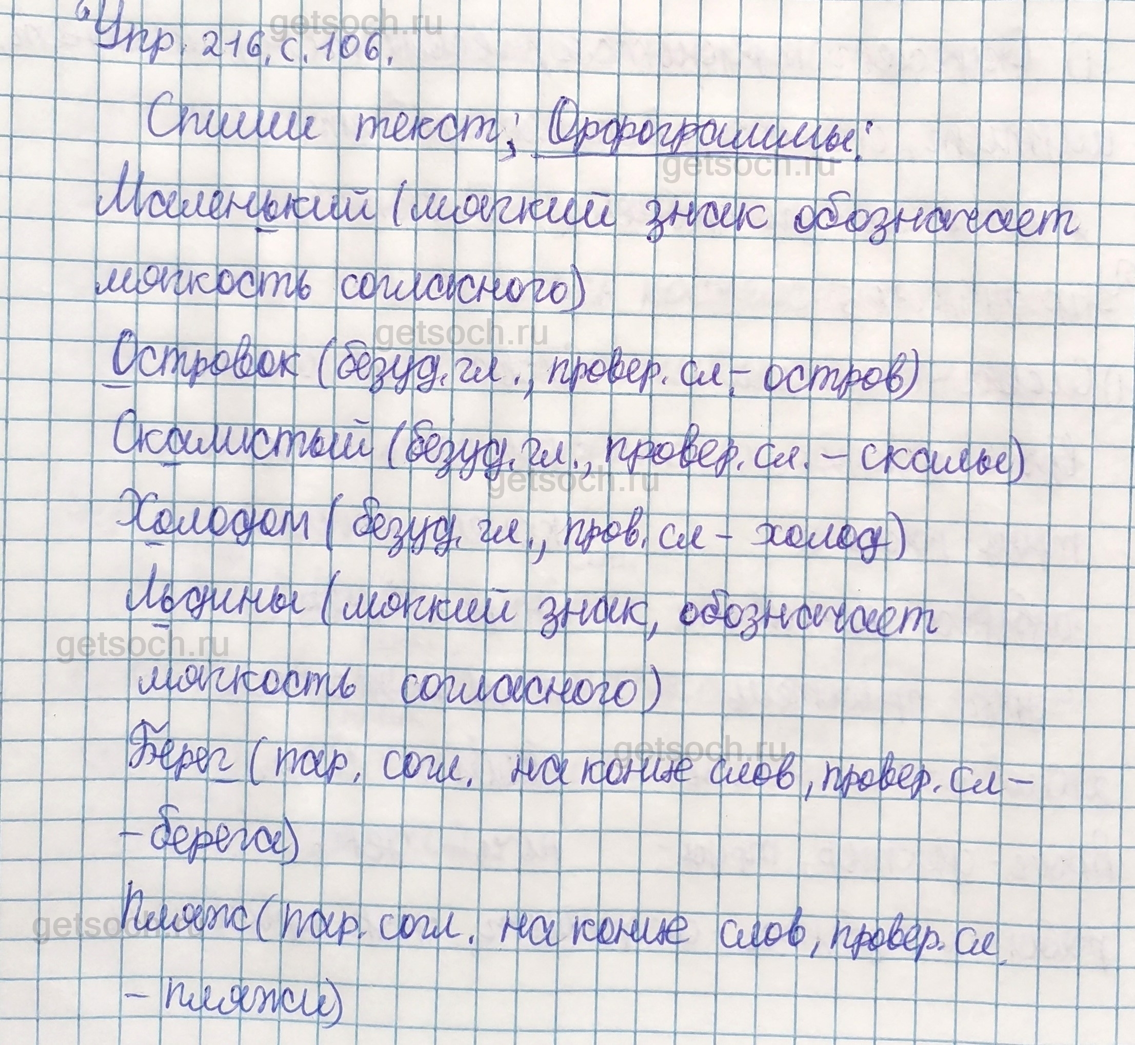 Рассмотрим ответы на Упражнение 216 из учебника по русскому языку для 2 класса Поляковой