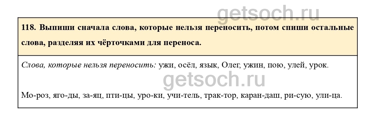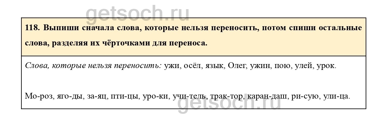 118. Выпиши сначала слова, которые нельзя переносить, потом спиши остальные