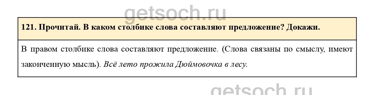 121. Прочитай. В каком столбике слова составляют предложение? Докажи.