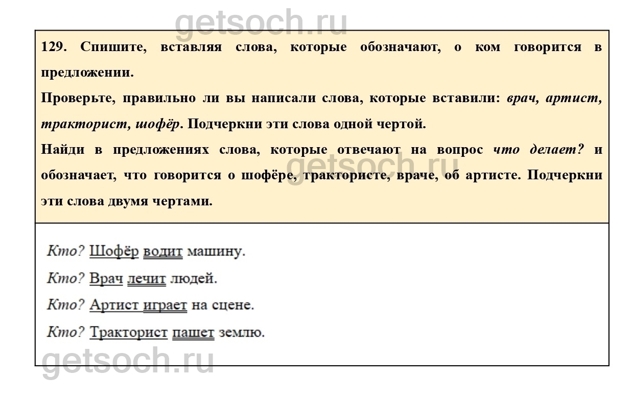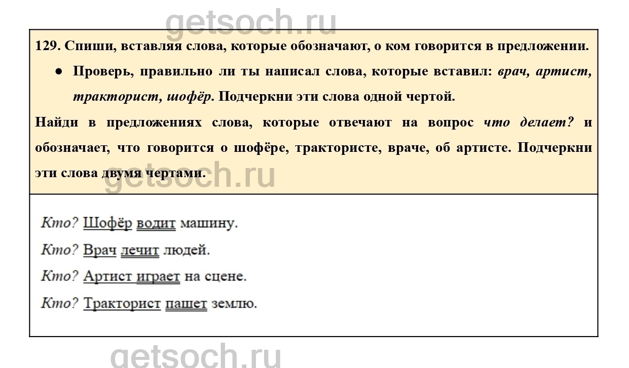 129. Спиши, вставляя слова, которые обозначают, о ком говорится в