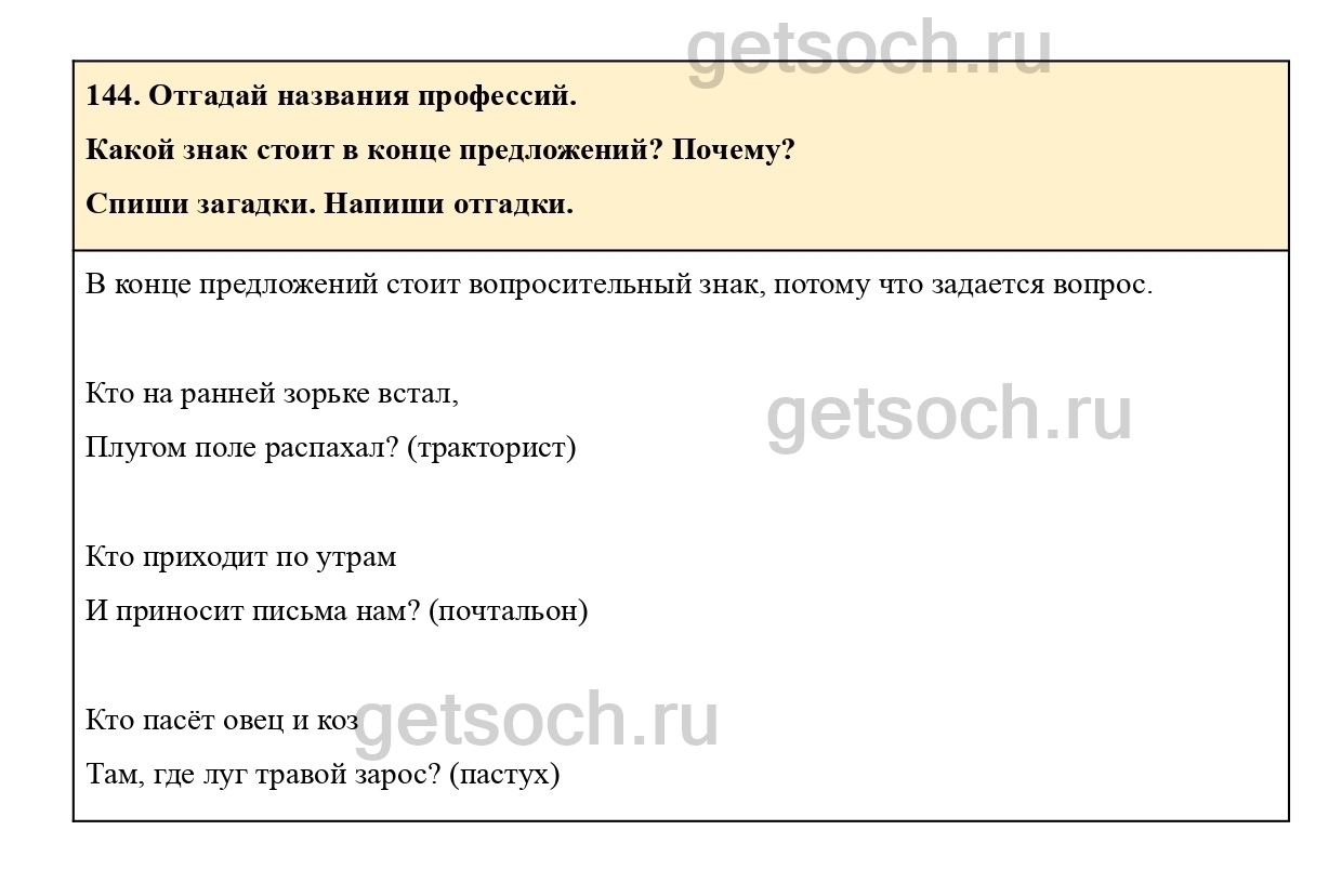 Рассмотрим ответы на Упражнение 144 из учебника по русскому языку для 2 класса Рамзаевой