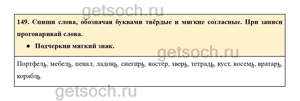 149. Спиши слова, обозначая буквами твёрдые и мягкие согласные. При записи