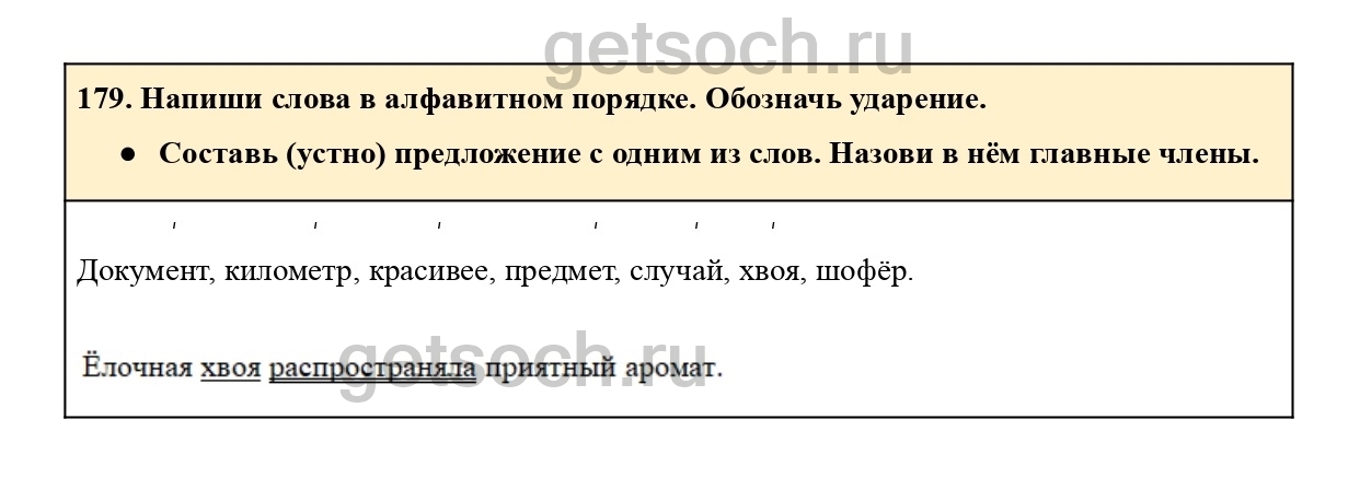 179. Напиши слова в алфавитном порядке. Обозначь ударение.