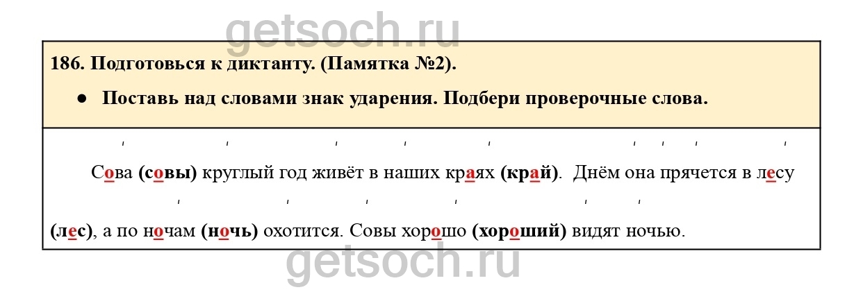 Рассмотрим ответы на Упражнение 186 из учебника по русскому языку для 2 класса Рамзаевой