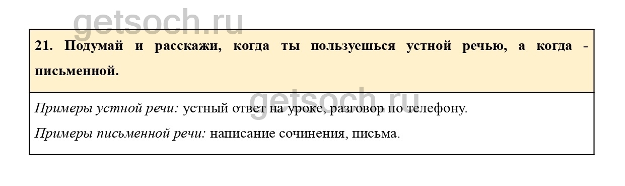 21. Подумай и расскажи, когда ты пользуешься устной речью, а когда –