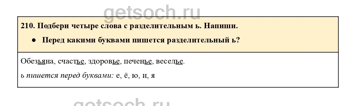 210. Подбери четыре слова с разделительным ь. Напиши.