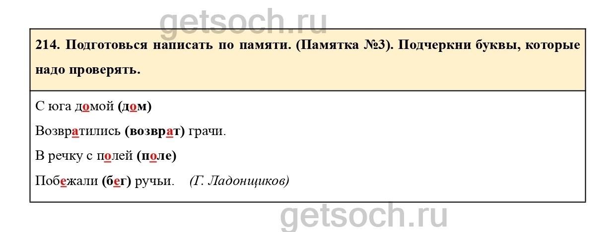 214. Подготовься написать по памяти. (Памятка №3). Подчеркни буквы, которые