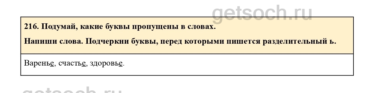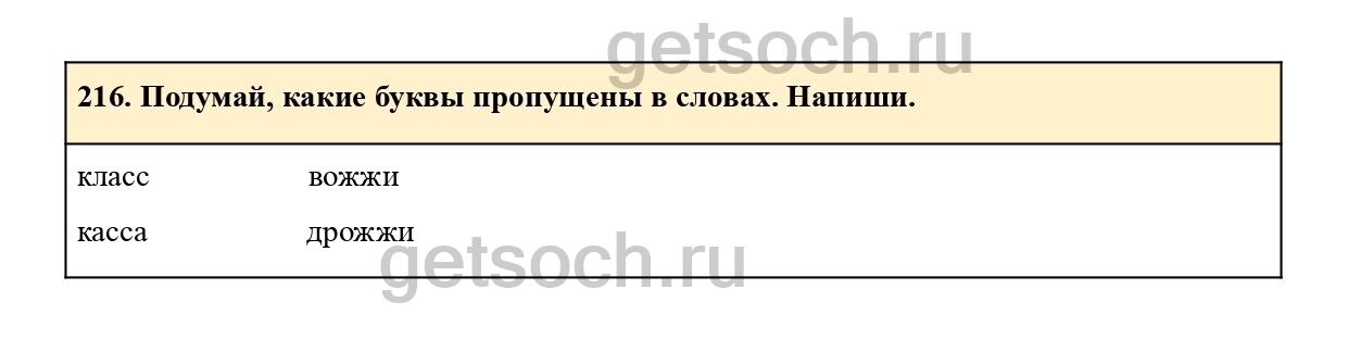 216. Подумай, какие буквы пропущены в словах. Напиши.