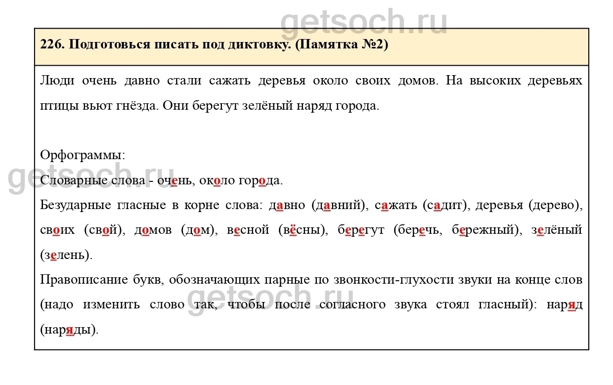 Рассмотрим ответы на Упражнение 226 из учебника по русскому языку для 2 класса Рамзаева