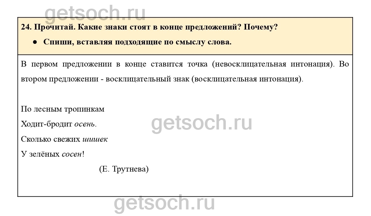 24. Прочитай. Какие знаки стоят в конце предложений? Почему?