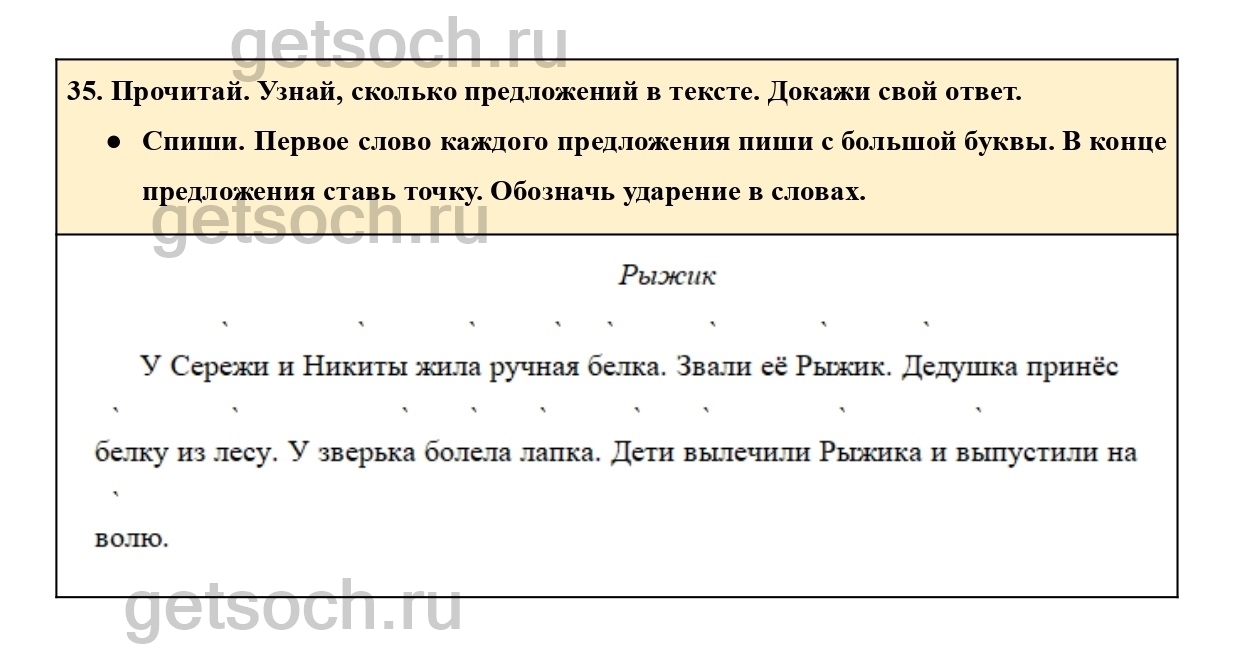 35. Прочитай. Узнай, сколько предложений в тексте. Докажи свой ответ.