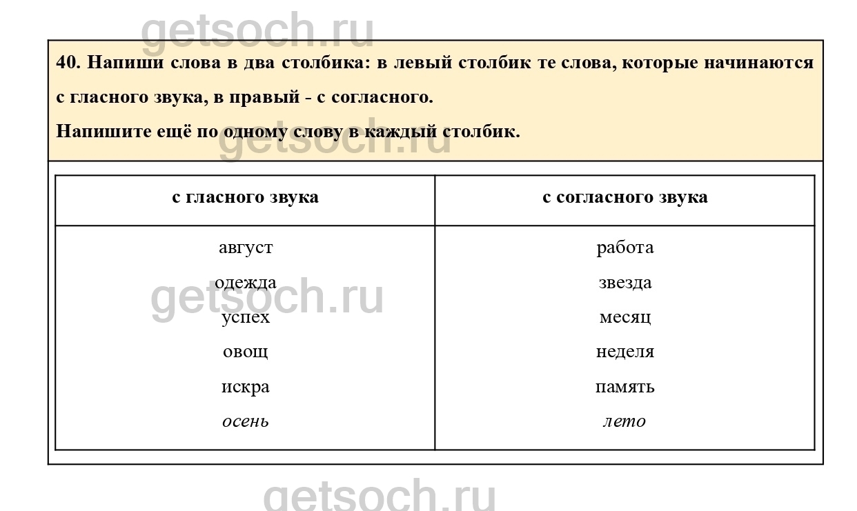 Рассмотрим ответы на Упражнение 40 из учебника по русскому языку для 2 класса Рамзаевой