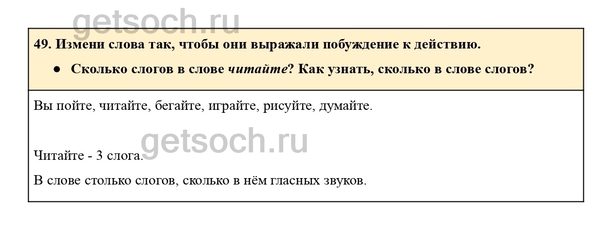 49. Измени слова так, чтобы они выражали побуждение к действию.