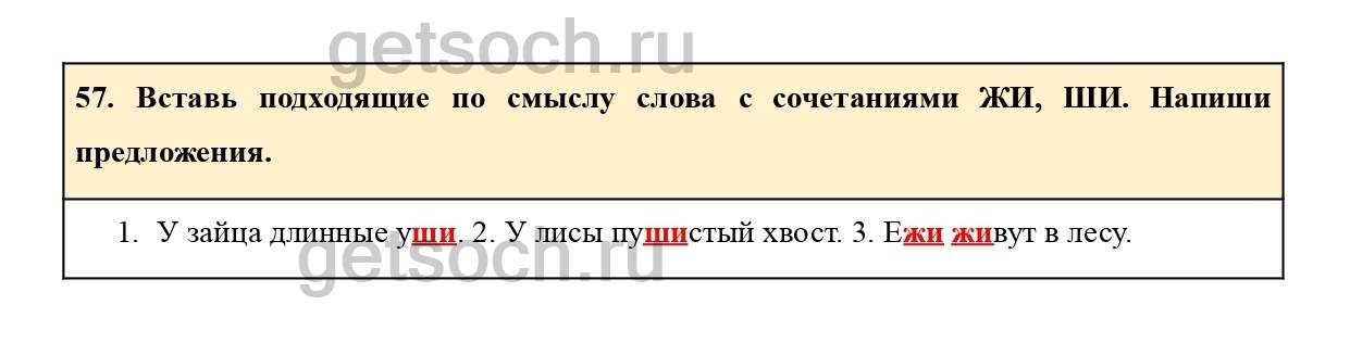 57. Вставь подходящие по смыслу слова с сочетаниями ЖИ, ШИ. Напиши