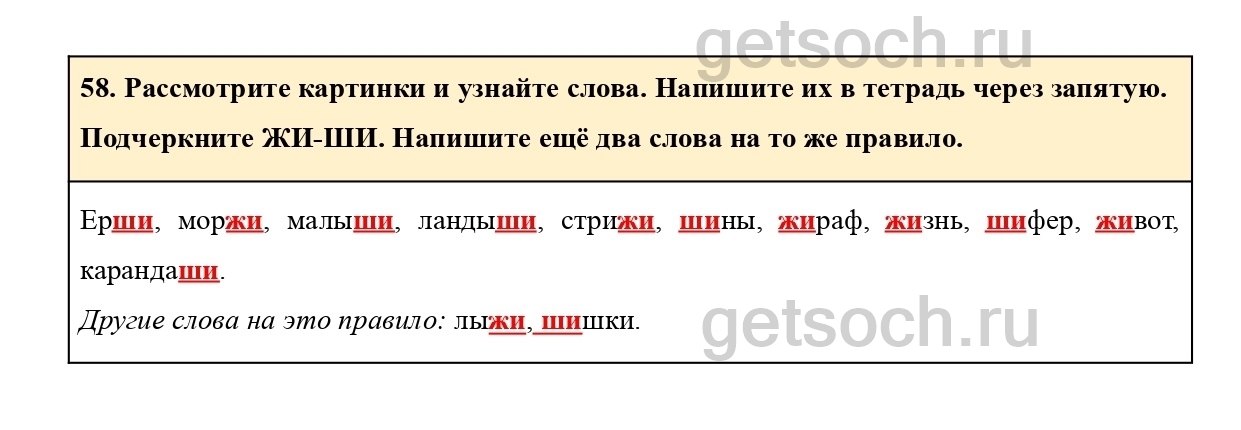 Рассмотрим ответы на Упражнение 58 из учебника по русскому языку для 2 класса Рамзаевой