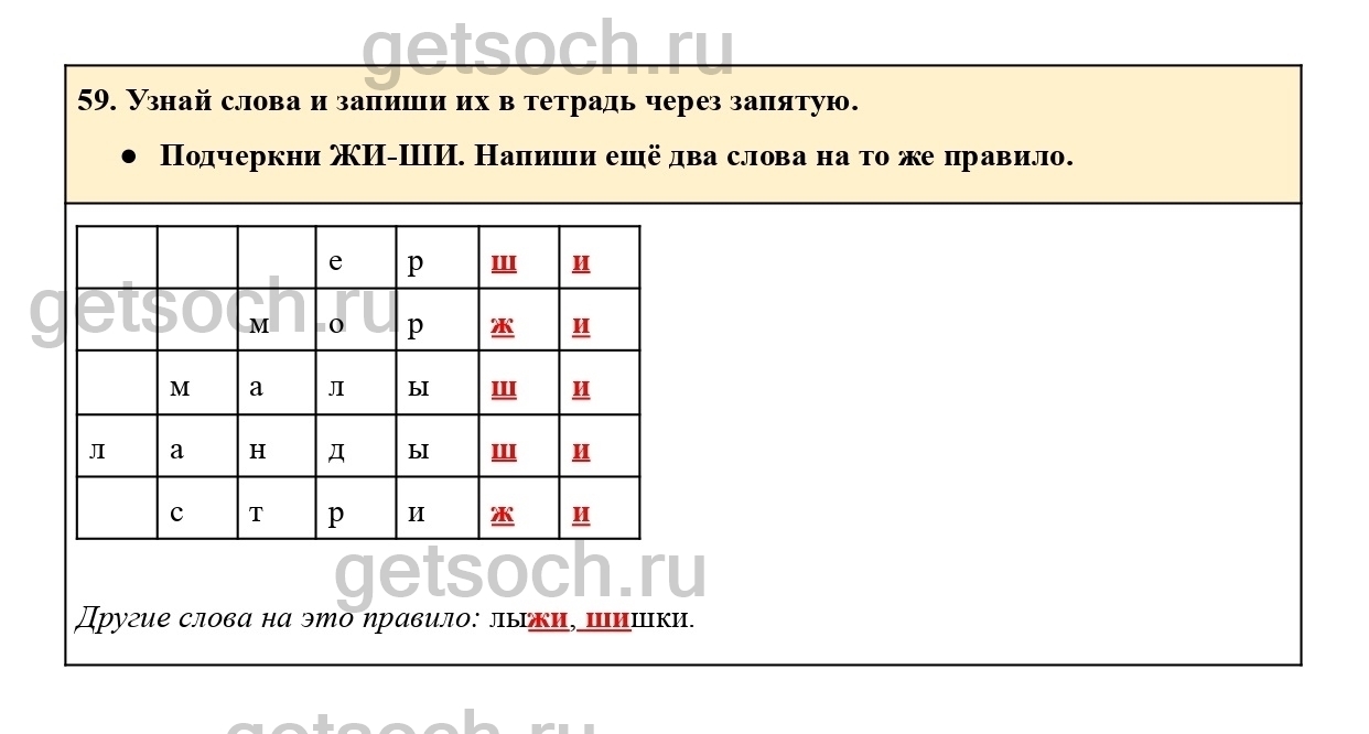 ● Подчеркни ЖИ-ШИ. Напиши ещё два слова на то же правило.