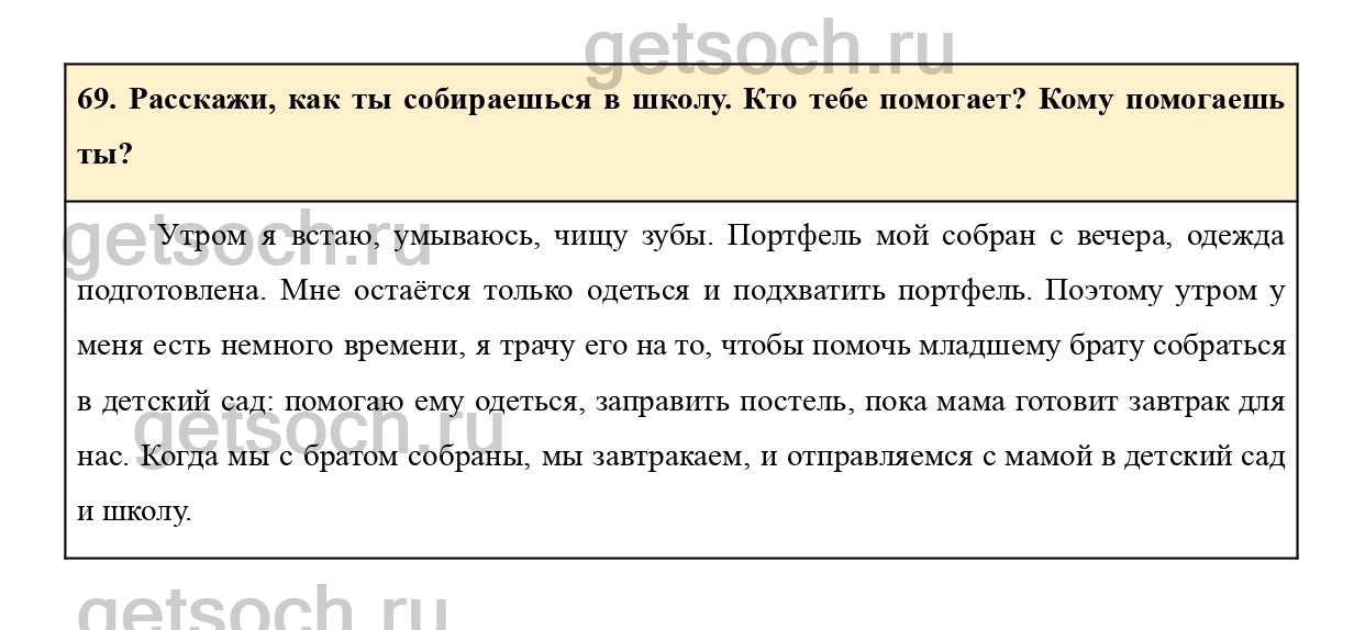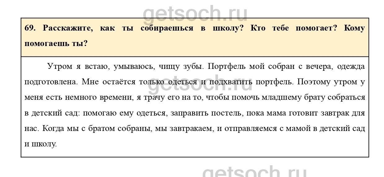 69. Расскажи, как ты собираешься в школу. Кто тебе помогает? Кому помогаешь