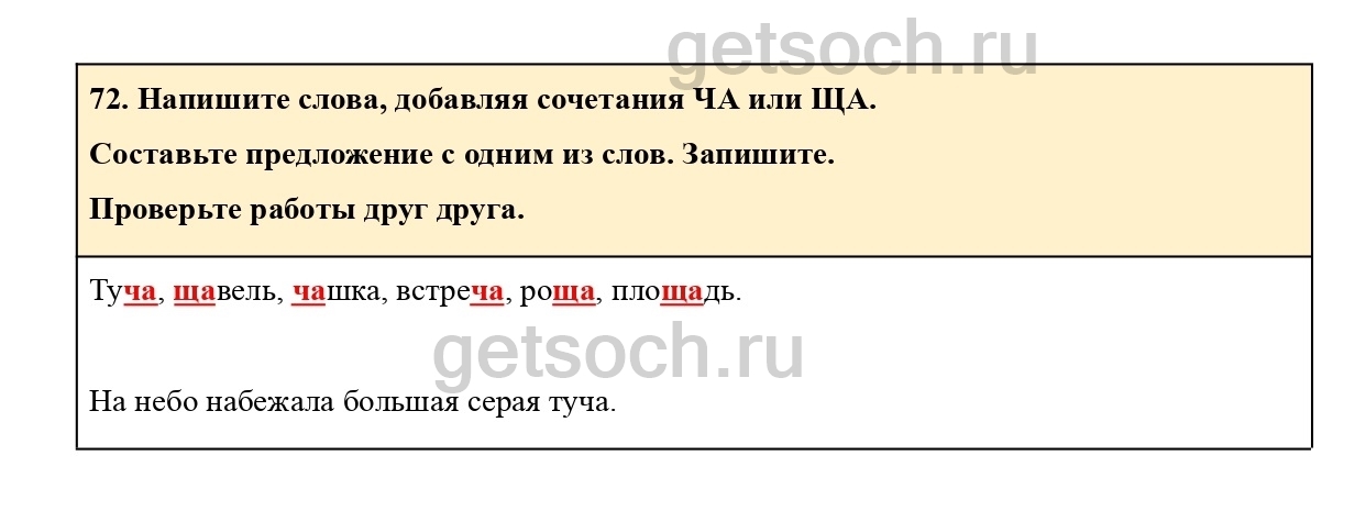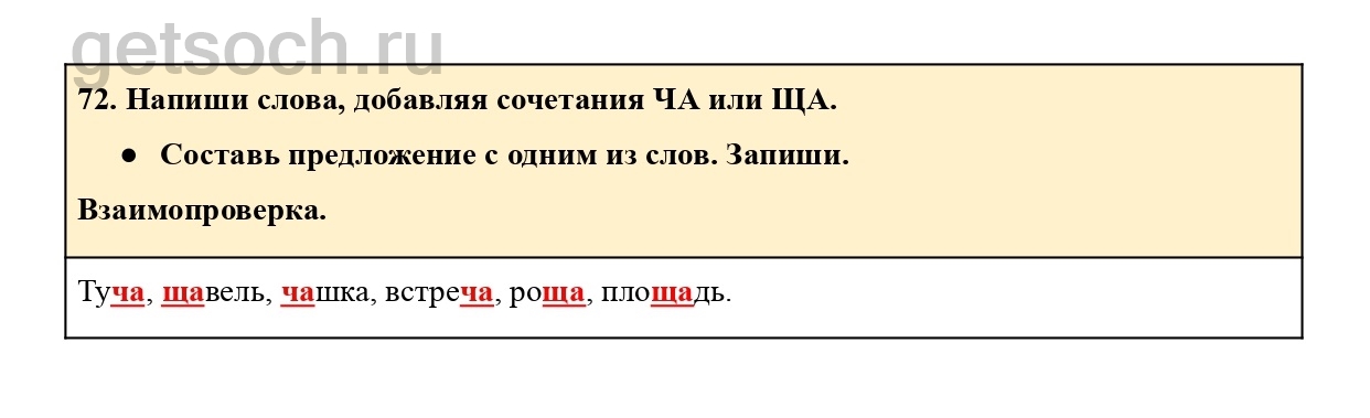 72. Напиши слова, добавляя сочетания ЧА или ЩА.
