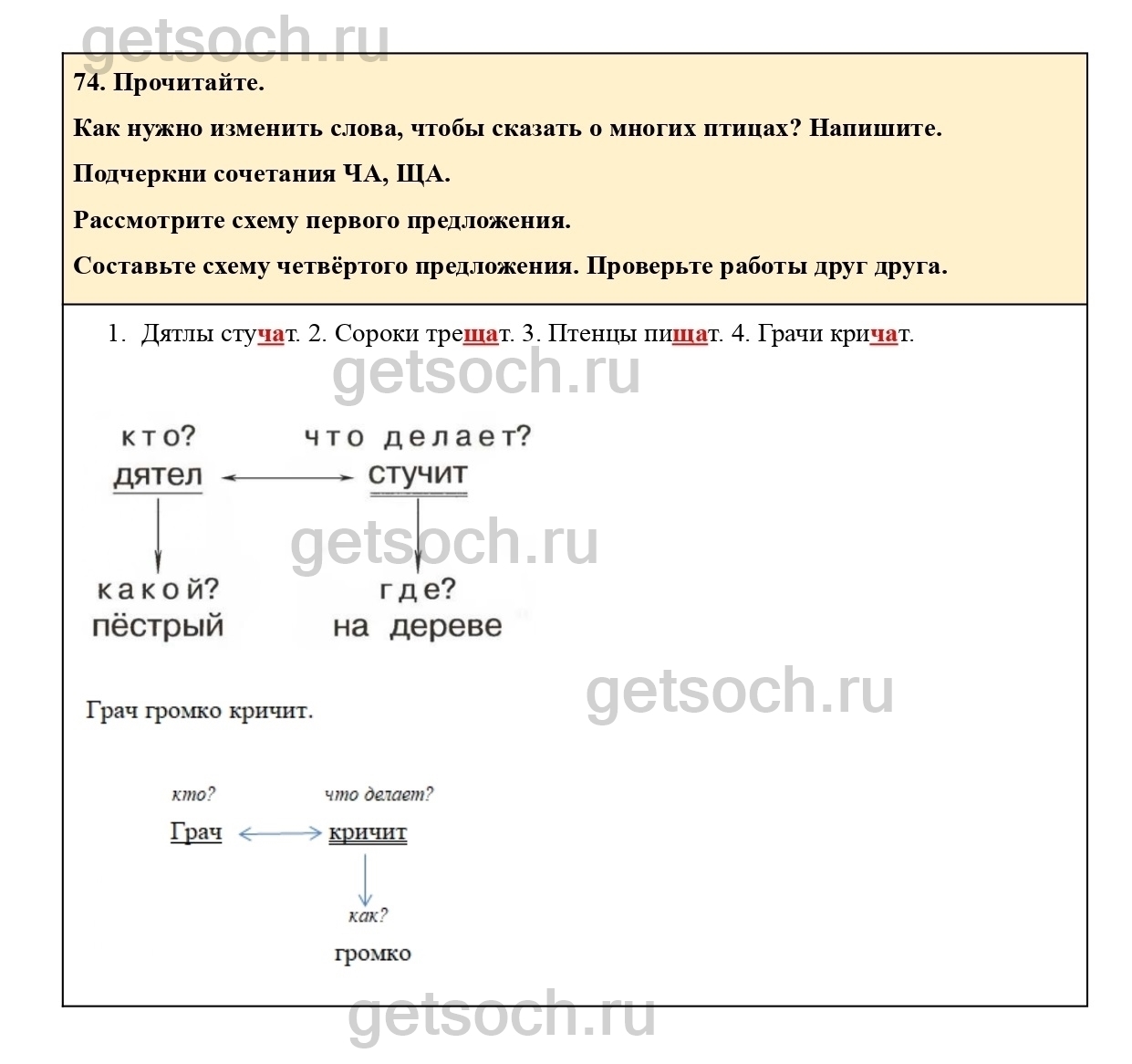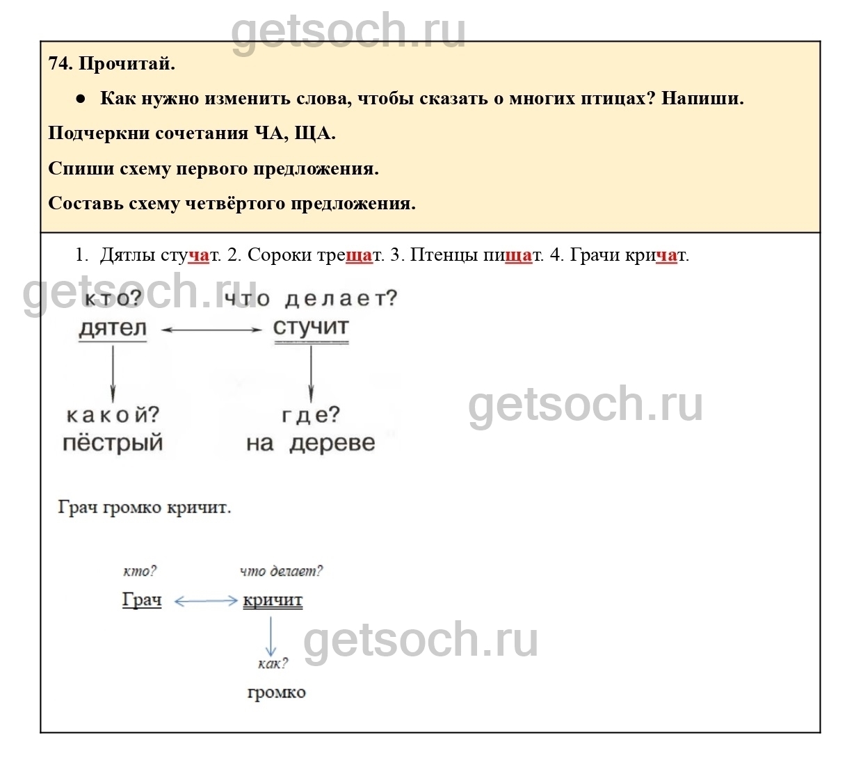 Рассмотрим ответы на Упражнение 74 из учебника по русскому языку для 2 класса Рамзаевой