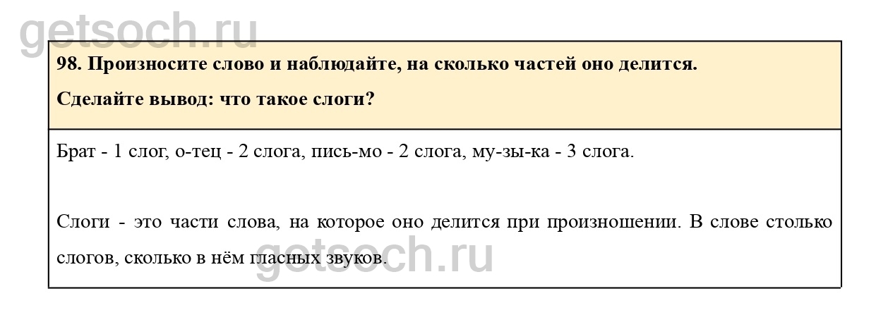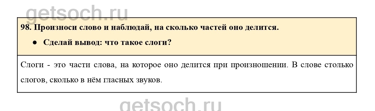 98. Произноси слово и наблюдай, на сколько частей оно делится.
