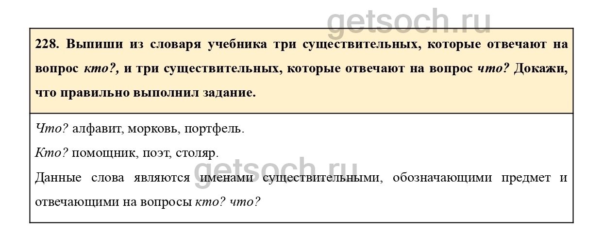 228. Выпиши из словаря учебника три существительных, которые отвечают на