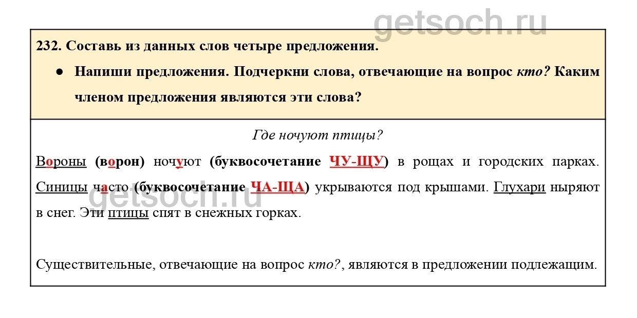 232. Составь из данных слов четыре предложения.