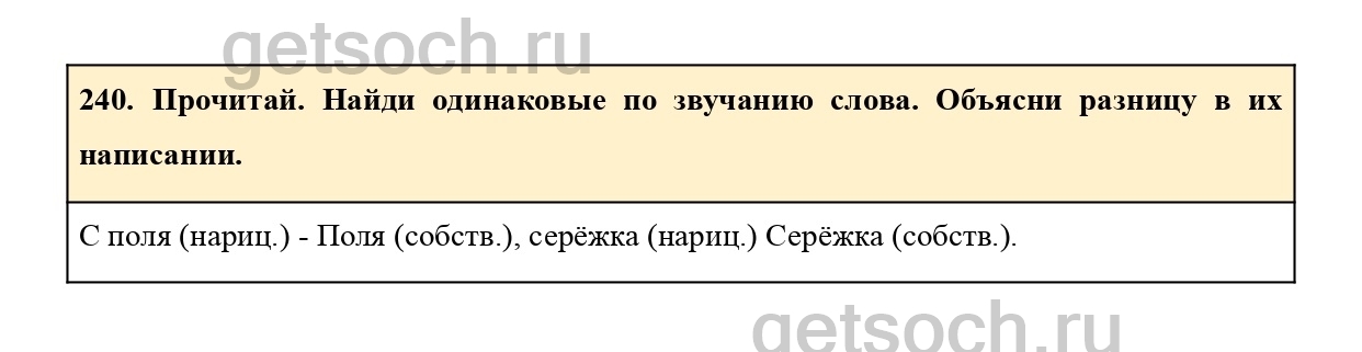 240. Прочитай. Найди одинаковые по звучанию слова. Объясни разницу в их